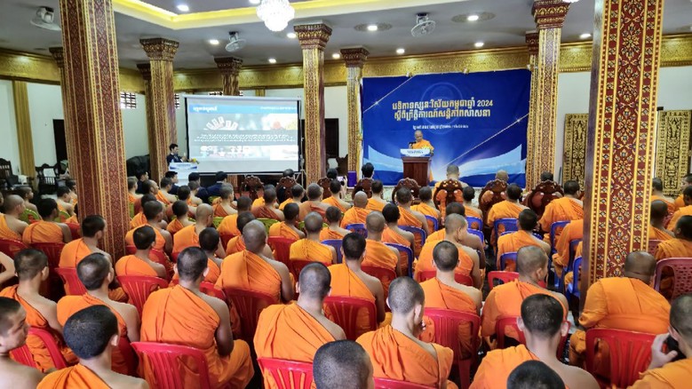 | ▲6월 29일 짝 앙그레 끄라옴 파고다(Chak Angre Krom Pagoda) 사원에서 2024 캄보디아 종교 평화 비전 포럼이 열린 가운데 주최자인 속 분트은 국립 불교 교육 총감찰부 불교고등교육부 부장스님이 환영사를 하고 있다. |