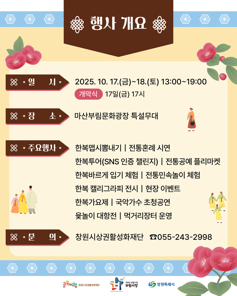행사 기간 동안 마산부림시장 일대에서는 한복을 입은 시민들을 위한 포토존이 설치되고, SNS 인증 이벤트도 함께 진행된다.