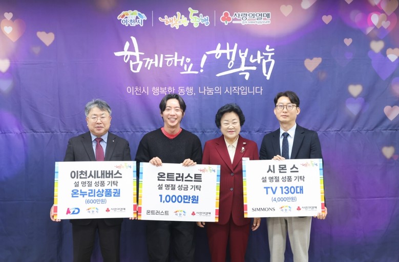 김경희 이천시장은 “이번 기탁은 단순한 물품 지원을 넘어 이웃과 함께한다는 따뜻한 메시지를 전하는 의미 있는 나눔”이라며 “시에서도 명절에 소외되는 이웃이 없도록 세심히 살피겠다”라고 감사의 마음을 전했다.
