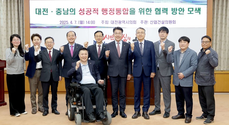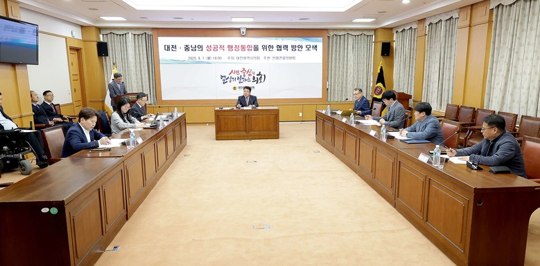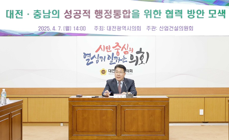 [대전 세계타임즈=이채봉 기자] 대전시의회 산업건설위원회는 7일 대전시의회 소통실에서 송활섭 의원(무소속, 대덕구 2)을 좌장으로 ‘대전·충남의 성공적 행정통합을 위한 협력 방안 모색’ 정책토론회를 개최했다.