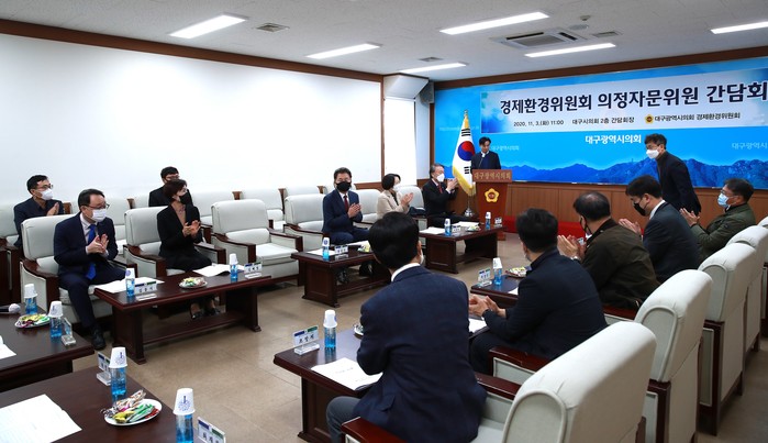 [대구=세계타임즈 한성국 기자] 대구광역시의회 경제환경위원회(위원장 홍인표)는 11월 3일(화) 오전 11시 경제‧환경분야 외부전문가로 구성된 의정자문위원과 간담회를 개최해 위원회 소관 시정 주요현안에 대한 전문가 의견을 청취하고 함께 토론하는 시간을 가졌다.