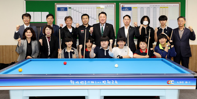 이날 신충식 위원장은 “사제동행 당구 중점학교 운영이 학교 내의 스포츠 문화와 학생들의 정서 발달에 긍정적인 영향을 미치고 있음을 볼 수 있었다”며 “이러한 긍정적인 변화가 학생들의 사회성과 자아 존중감을 높이는 데 도움이 되길 바란다”고 말했다.