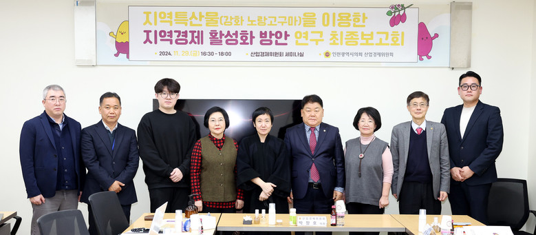 또 박판순·이선옥 의원은 “향후 강화 속노랑고구마를 이용해 만든 액체비누나 샴푸 등이 식약처의 승인을 받게 된다면 지역 특산물로 만드는 친환경 제품을 의료기관 등에 비치하는 방안도 고려하길 바란다”고 제안했다.