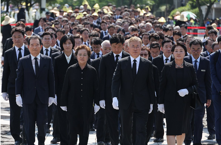 노무현 전 대통령 묘역 참배하는 여야 지도부