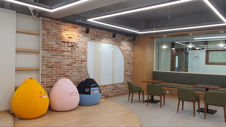 공간은 차분한 색감의 마감재, 은은한 조명, 편안한 가구, 생기를 더하는 식물 등으로 구성되어 학생들이 안정감을 느끼고 편안히 머무를 수 있도록 설계되었다.