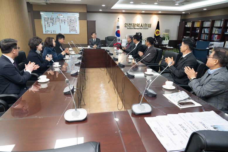 [인천 세계타임즈=심하린 기자] 인천광역시의회 정해권 의장(국・연수구1)이 인천 지역을 위해 노력하는 오피니언 리더 모임인 ‘인화회’ 회원들과 지역발전 논의 및 성과 공유를 위한 자리를 마련했다.