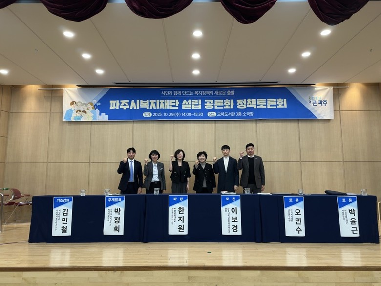 [파주시 세계타임즈=송민수 기자] 파주시는 지난 29일 교하도서관 3층 소극장에서 ‘파주시복지재단 설립 공론화 정책토론회’가 시민, 사회복지시설장, 사회복지 종사자들의 참여 속에 성황리에 진행됐다고 밝혔다.