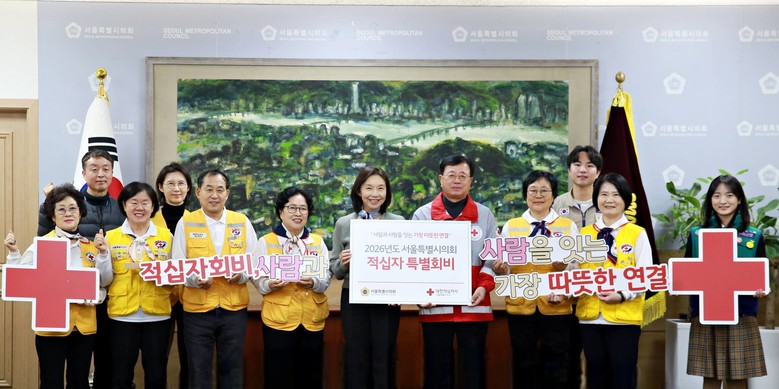 [서울 세계타임즈=이장성 기자] 대한적십자사 서울특별시지사(회장 권영규)는 서울특별시의회(의장 최호정)가 2026년도 적십자 특별회비를 전달하며 연말 이웃사랑 나눔에 동참했다고 밝혔다.