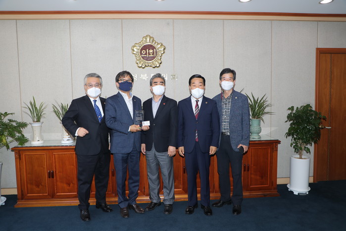 이날 제주도의회 김용범 운영위원장은 충북도의회를 방문해 제주특별자치도지사를 대신해 명예도민증을 전달했다.