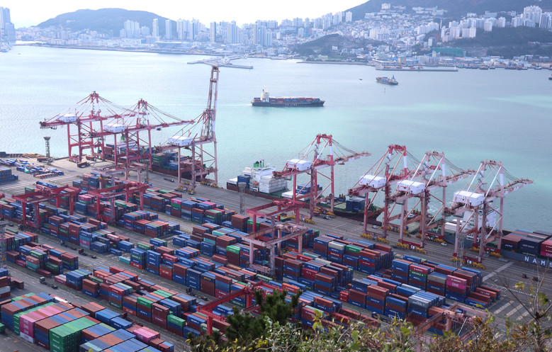 지난달 29일 부산 남구 신선대부두 야적장에 수출입 화물이 쌓여있다. 2024.11.29