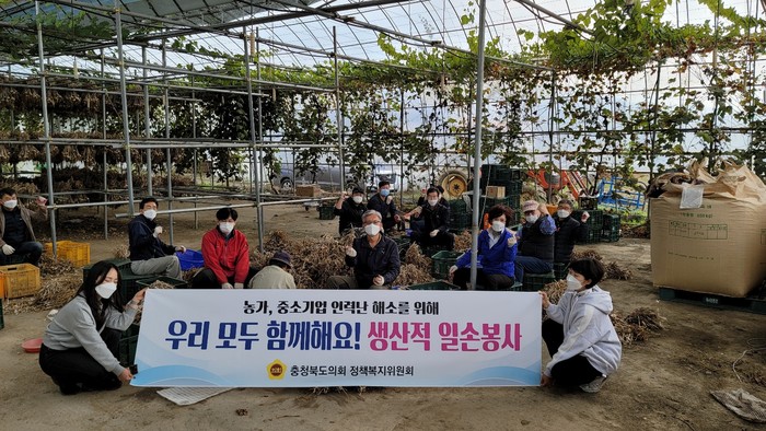 [충북=세계타임즈 이현진 기자] 충청북도의회 정책복지위원회는 19일 인력난으로 어려움을 겪고 있는 옥천군 청산면 소재 농가를 찾아가 일손 돕기에 나섰다.
