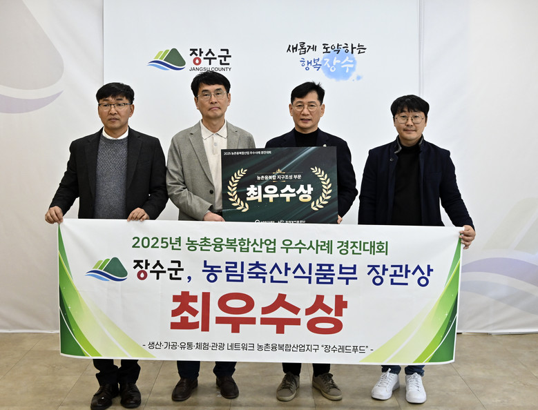 [세계타임즈=장수군 김서주 기자] 장수군은 18일 농림축산식품부가 주관한 ‘2025년 농촌융복합산업 우수사례 경진대회’에서 ‘농촌융복합산업지구’ 분야 ‘최우수상’을 수상했다고 밝혔다.
