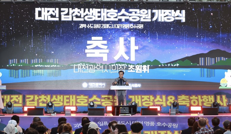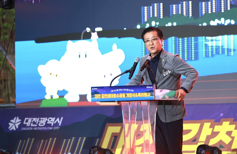 [대전 세계타임즈=이채봉 기자] 대전시의회 조원휘 의장은 27일 갑천생태호수공원 수변광장에서 개최된 대전 갑천생태호수공원 개장식에 참석해 관계자들을 격려하며 공원 개장을 축하했다.