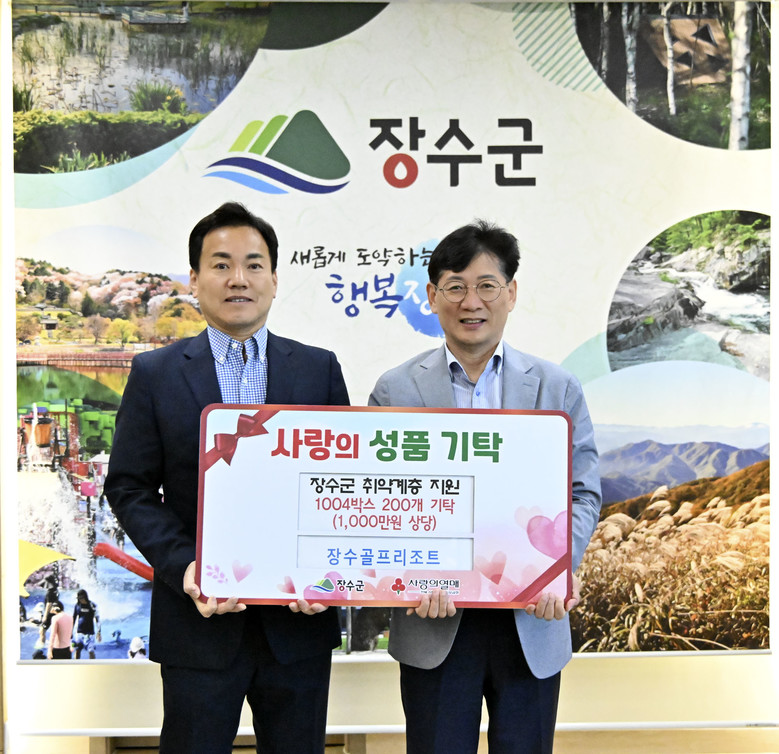 최훈식 군수는 “지역사회를 위해 따뜻한 나눔을 실천해주신 장수골프리조트 대표님과 관계자에 감사의 인사를 전한다”며 “기부물품은 도움이 필요한 이웃들에게 소중히 전달하겠다”고 밝혔다.