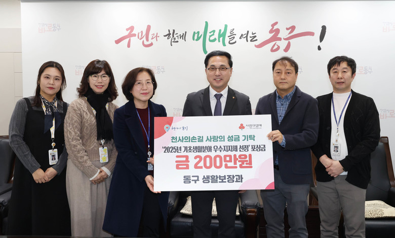 [동구 세계타임즈=이채봉 기자] 대전 동구(구청장 박희조)는 ‘기초생활보장 분야 사업 평가’에서 우수지자체로 선정돼 받은 기관 포상금 200만 원을 동구 대표 복지브랜드인 ‘천사의 손길’에 기탁했다고 밝혔다.
