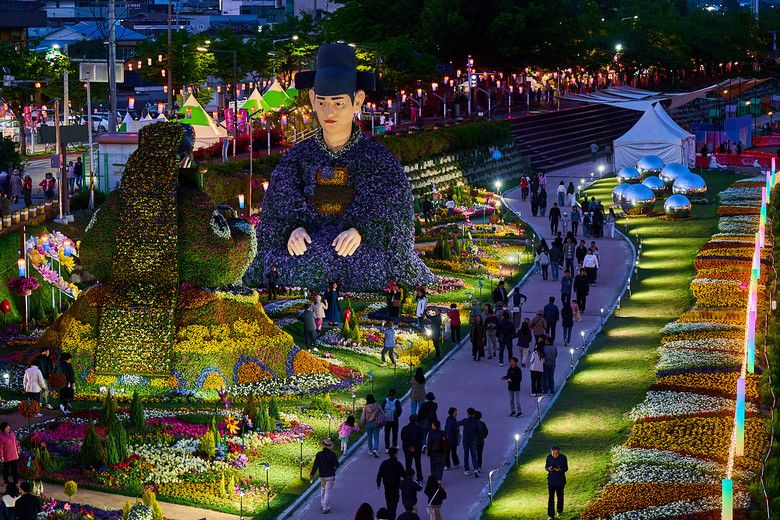 광한루원은 별도의 임시 구조물 없이 원형 그대로를 활용해 자연의 품 안에서 전통을 체험할 수 있는 공간으로 기능했고, 요천변 춘향‧이도령 꽃동상 주변은 이번 춘향제의 랜드마크로서, 독창적인 포토존이자 여백의 미를 살린 명소로 부각되었다.