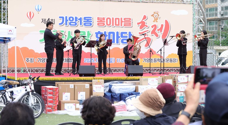 이번 축제는 가양1동 자생단체협의회(회장 오경진) 주관으로 진행됐으며, 식전공연을 시작으로 ▲대전아트필하모닉오케스트라 금관 앙상블 ▲버블쇼 ▲댄스 및 색소폰 공연 ▲태권도 시범 ▲전통·퓨전 난타공연 등 다채로운 무대가 펼쳐져 관람객들의 큰 호응을 얻었다.