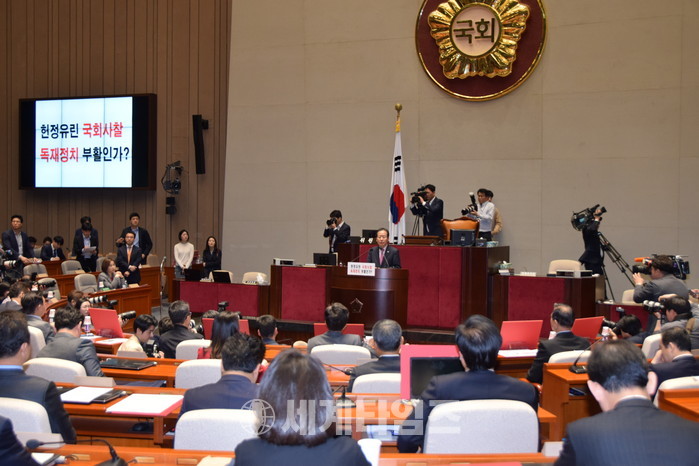 [세계타임즈 이채봉 기자]김성태 원내대표 독재정권이라는 게 자유당 정권, 군산정권만 독재정권이라고 일컫지 않는다. 21세기를 살아가면서 대한민국은 불안하게도 문재인 독재정권을 맞아서 대한민국의 민주주의가 근본적으로 유린되고 있는 이 암담한 상황을 맞이했다.