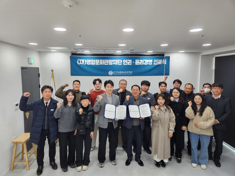[세계타임즈=영암군 우덕현 기자] 영암문화관광재단(이하 재단)은 지난 2025년 12월 3일(수) 영암군 조훈현 바둑기념관에서 전 임직원이 참석한 가운데 「인권·윤리경영 선포식」을 개최하고, 인간의 존엄과 가치를 최우선으로 하는 책임 있는 공공기관으로서의 역할을 강화하겠다고 선언했다.