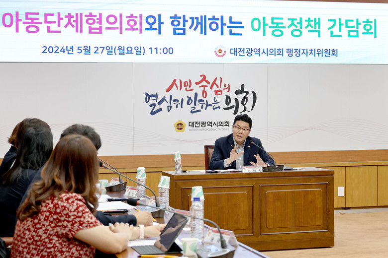 [대전 세계타임즈=이채봉 기자] 대전시의회는 27일 시의회 소통실에서 정명국 의원(국민의힘, 동구3) 주재로 아동단체협의회와 아동복지 업무의 애로사항을 청취하고 개선방안을 논의하는 간담회를 실시했다.