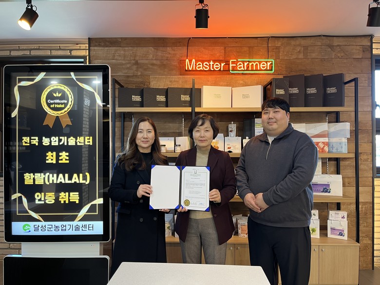 ▸ 달성군 농산물 가공기술의 우수성과 안전성 공인받은 성과 [세계타임즈=달성군 한윤석 기자] 달성군(군수 최재훈)은 달성군농업기술센터가 전국 농업기술센터 중 최초로 할랄 인증을 취득했다고 2일 밝혔다.