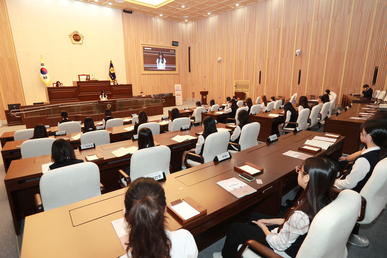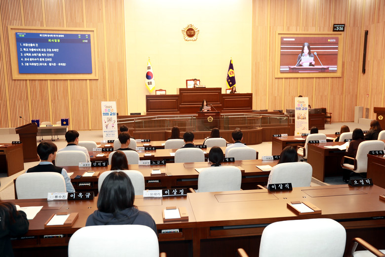 청소년 의회교실은 학생들이 1일 도의원이 되어 본회의장에서 의장을 선출하고, 의안 처리, 2분 자유발언 등 의정활동을 직접 체험하는 프로그램이다.