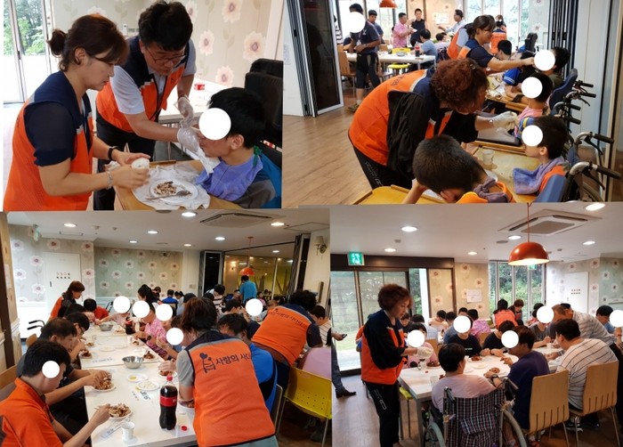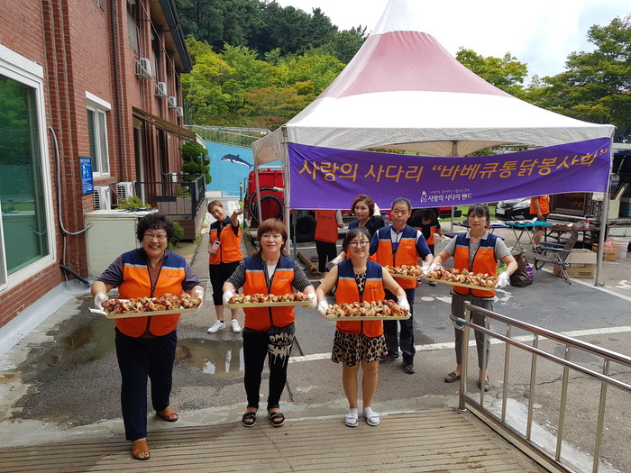 [대전=세계타임즈 이장성 기자] 7천명 SNS 대전시 봉사단체 사랑의 사다리 밴드(리더 이정제)는 28일 오후1시 유성구 용계동에 위치한 중증장애인거주시설 성세재활원(원장 김원식)의 중증장애인들에게 바비큐통닭봉사로 우리 사회의 따뜻한 사랑을 전달하였다.