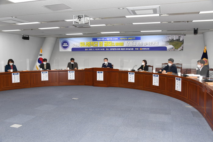 금일 정책토론회는 지난해 김 의원이 광산구청장에 재(再) 도전하기 위해 광산구 전반에 걸쳐 민의를 수렴하던 중, 수완지구 조성 이후 14년 동안이나 방치되어 온 해당 부지에 대한 민원을 접하면서 잉태되었다고 했다. 그리고 민원 내용은 수완동은 물론 인근 신가·신창지구 주민들까지도 그동안 방치되어 온 부지(972번지)에 명품 도서관이나 복합커뮤니티 센터 건립을 바라는 내용이었다.
