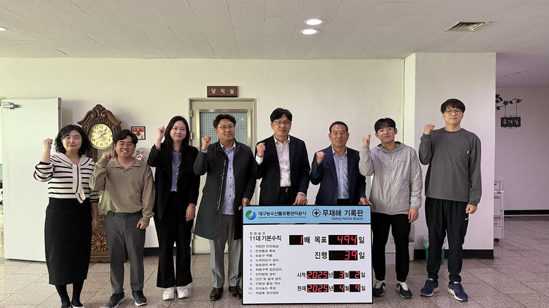 김상덕 대구농수산물유통관리공사 사장은 “임직원 및 유통종사자를 위한 안전관리체계 강화로 중대재해 및 산업재해를 예방하기 위해 노력하고 있다”며, “앞으로도 적극적인 안전점검을 실시하여 무재해를 달성해 안전한 근로환경을 조성하겠다”고 말했다.