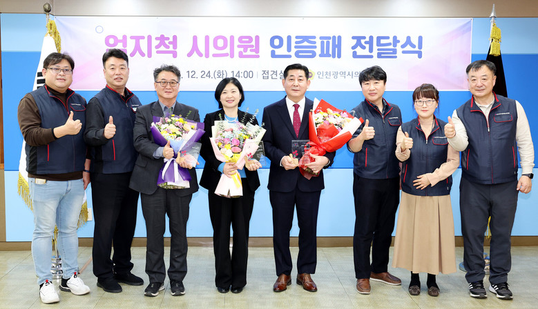 [인천 세계타임즈=심하린 기자] 인천시광역시의회(의장 정해권)는 24일 접견실에서 의회 간부공무원과 상임위 직원, 인천공무원노동조합 관계자 등이 참석한 가운데 ‘2024 엄지척 시의원 인증패 수여식’을 가졌다.