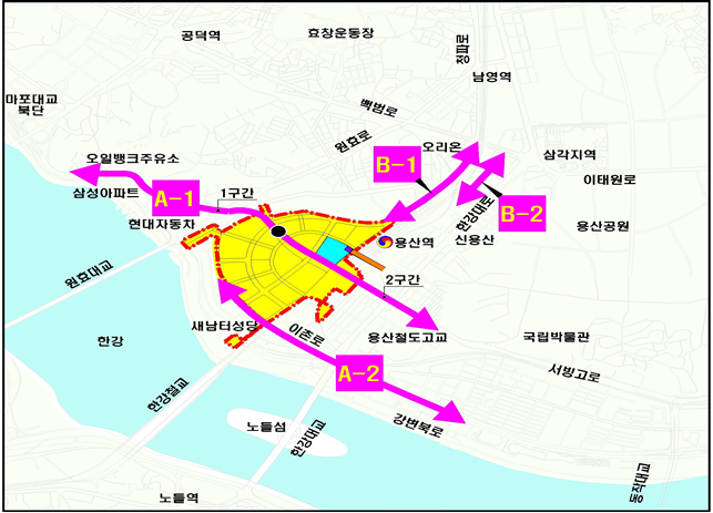양 기관은 용산국제업무지구 ▲ 동서 방향 연결 도로(A-1) ▲ 강변북로 연결 도로(A-2) ▲ 남북 방향 연결 도로(B-1) ▲ 용산역 전면~백범로 연결 도로(B-2) 등 4개 신설 도로의 기본 및 실시설계 용역 계약을 16일 체결하고, 향후 약 24개월간 관련 작업을 진행한다.
