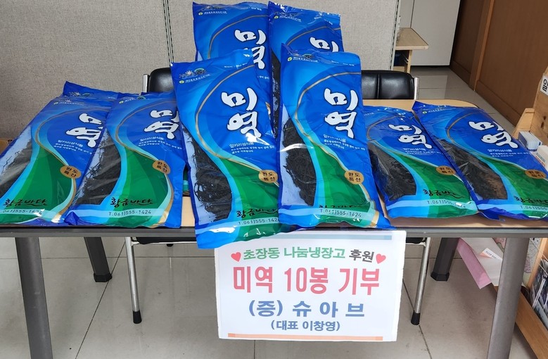 [서구 세계타임즈=이용우 기자] 서구 초장동 슈아브 대표 이창영 씨가 4월 3일 초장동(동장 윤성욱) 나눔 냉장고에 어려운 이웃에게 전달해 달라며 10만 원 상당의 미역을 기부했다. 이창영 대표는 2024년부터 초장동주민센터에 계란, 양파, 고구마 등 다양한 식료품을 꾸준히 기부하며 이웃사랑을 실천하고 있다.
