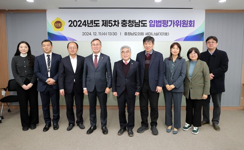 [충남 세계타임즈=이현진 기자] 충남도의회는 11일 의회 세미나실에서 제5차 입법평가위원회(위원장 유성재) 회의를 열고 2024년도 충청남도 입법평가 연구용역 최종보고회를 가졌다.