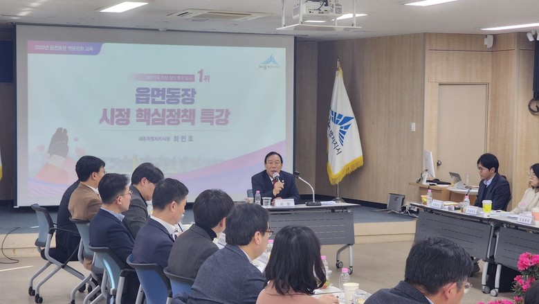 이날 회의에 앞서 최민호 시장은 ‘세종사랑운동’과 ‘시정 5대 비전’ 등 시정 핵심 가치에 대한 특강을 통해 읍면동장들에게 시민들의 목소리를 귀담아듣고 적극적으로 소통할 것을 당부했다.