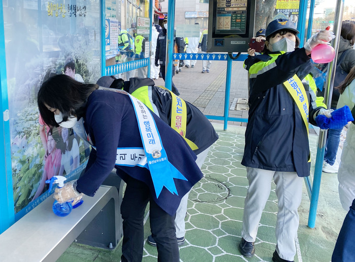 이날 이 의원과 무거119안전센터, 의용소방 대원 30여 명은 주민들이 많이 이용하는 남구 대학로 웰츠타워 버스정류장과 신복환승센터 등을 찾아 의자와 출입문 손잡이 등을 소독하고 사회적 거리두기 참여, 개인 위생수칙 준수, 올바른 마스크 착용법 등을 홍보했다.