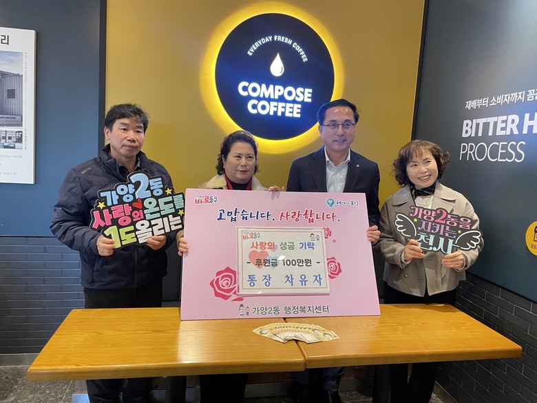 이어 가양2동 통장협의회 소속 차유자 26통장은 지역사회보장협의체에 성금 100만 원을 기탁하며 나눔의 의미를 더했다. 이날 기탁된 성금은 관내 취약계층 지원에 사용될 예정이다.