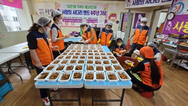 [대전 세계타임즈=이채봉 기자] 지방자치단체의 보조금 지원없이 대전지역 소외계층을 위해 9년째 다양한 봉사활동을 매월 15회~20회를 하고 있는 사랑의 사다리 밴드(리더 이정제) 봉사단체는 25일 맛있는 밑반찬을 만들어서 서구 소외계층 60가정에 전달하면서 따뜻한 사랑을 실천 하였다.