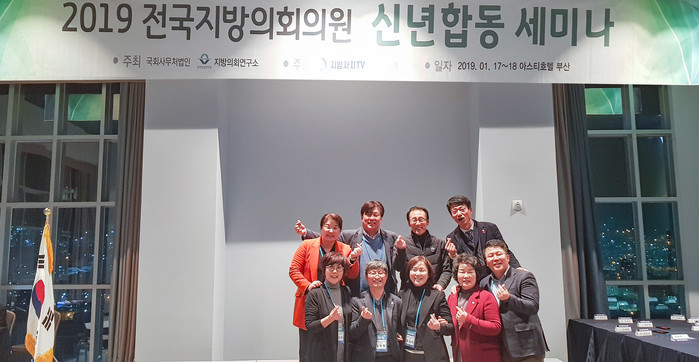 [수성군=세계타임즈 한성국 기자] 수성구의회(의장 김희섭) 의원 9명은 지난 17~18일 양일간 부산 아스티호텔에서 개최된 2019 전국지방의회 신년합동 세미나에 참석하였다.