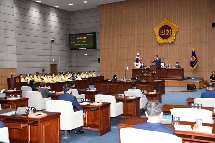 한편, ▲김익주 의원 ‘평동산단 폐기물소각장, 이용섭 시장이 막아야 한다’ ▲김학실 의원 ‘중증장애인생산품 우선구매 실태와 촉진’ ▲황현택 의원 ‘‘학동 참사’ 안전사고 사전예방 계기로 거듭나야 한다!’ ▲ 장연주 의원 ‘광주시는 학동붕괴사고 재발방지, 안전한 도시 광주를 위해 책임을 다해야 한다’ ▲ 최미정 의원 ‘광주 공영자전거 ‘타랑께’ 활성화 방안 마련 촉구’라는 주제로 5분 자유발언을 했다.