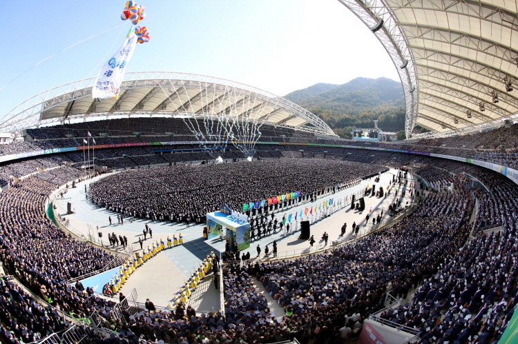 | ▲시온기독교선교센터 114기 수료식이 지난해 11월 12일 대구스타디움에서 열리고 있는 모습 [사진 제공 = 신천지예수교회] |