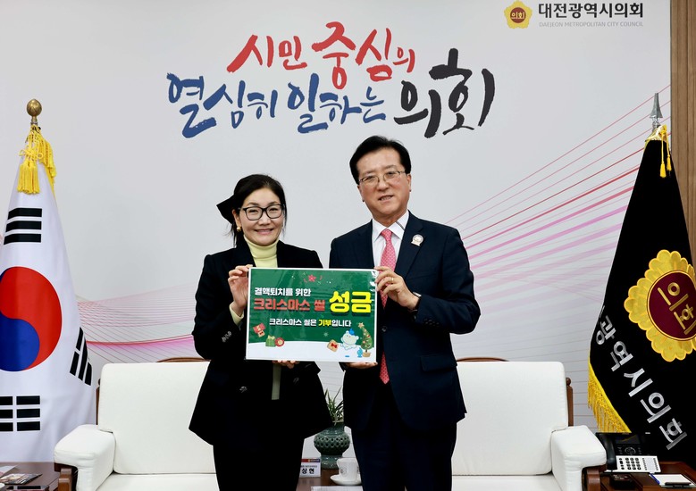 [대전 세계타임즈=이채봉 기자] 대전시의회 조원휘 의장은 11일 오후 시의회 접견실에서 대한결핵협회 대전·세종·충남지부(회장 남상현)와 ‘2024년 크리스마스 씰 증정식’을 갖고 결핵퇴치 성금을 전달했다.