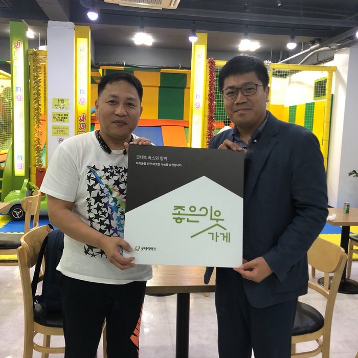 노영일 대표는 “아이들이 뛰어 노는 키즈카페를 운영하면서 좋은 이웃가게를 통해 국내저소득가정 아동들을 돕는 일에 동참하게 되어 기쁘다”며, “많은 금액은 아니지만 국내 저소득 아동들을 위해 소중하게 후원금이 사용되었으면 좋겠다”고 전했다.