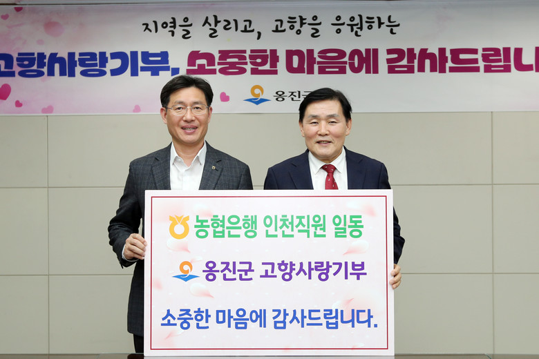 NH농협은행 인천본부는 평소 지역봉사와 나눔 활동에 관심을 갖고 적극 참여해 왔으며, 옹진군과 고향사랑기부 활성화를 위한 업무협약을 체결하고 지속적인 홍보와 참여를 이어오고 있다. 특히 2024년부터 NH농협은행 인천본부 직원들이 자발적으로 고향사랑기부에 동참해 옹진발전을 응원해 오고 있다.
