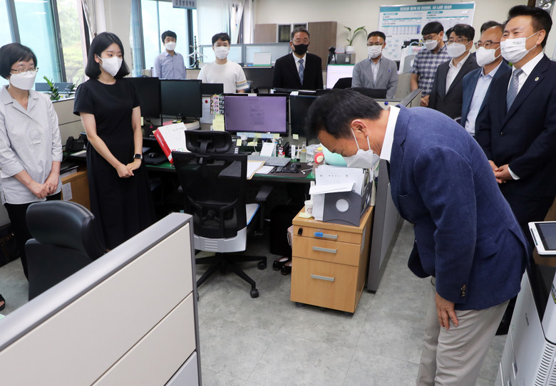 황 의장은 “코로나19와 각종 재난을 대비하고 피해를 최소화하기 위해 불철주야 애쓰고 있는 직원분들께 감사하다.” 라며, “코로나19가 재확산 위기에 놓여 있고, 집중호우 등 여름철 자연재해가 발생할 시기이니 만큼, 도민에게 피해가 발생하지 않도록 맡은 바 역할에 최선을 다해줄 것”을 당부했다.