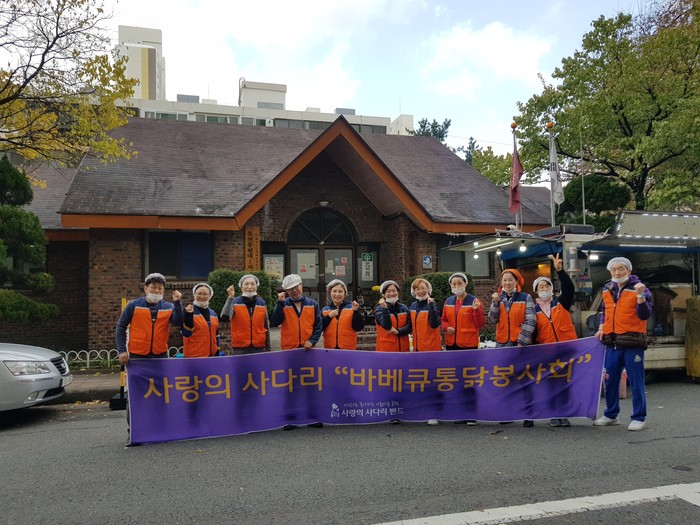 [대전=세계타임즈 이장성 기자] 대전시 SNS 봉사단체 사랑의 사다리 밴드(리더 이정제)는 15일 오후15시, 유천동 현대1차아파트 경로당에서 60명의 어르신들 간식시간에 바비큐 통닭봉사로 우리 사회의 따뜻한 사랑을 전달하였다.