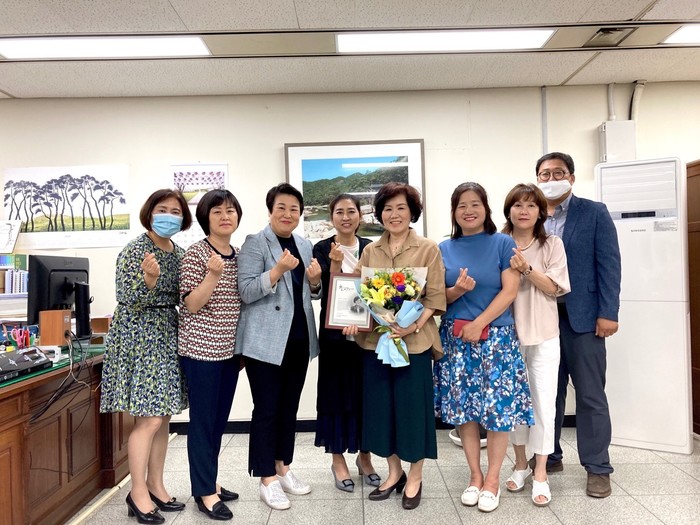 [충북=세계타임즈 이현진 기자] 교육위원회 이숙애 위원장(더불어민주당, 청주1)은 12일 도의회 교육위원장실에서 한국장애인부모회 청주시지부로부터 ‘함께하는 행복한 동행의 날’을 맞아 지역 장애인 복지증진에 기여한 공로를 인정받아 감사패를 받았다.