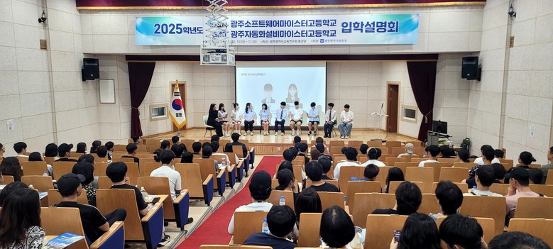 [광주 세계타임즈=손권일 기자] 광주소프트웨어마이스터고등학교(이하 광주소마고)와 광주자동화설비마이스터고등학교(광주자마고)는 지난 13일 광주교육연수원 중강당에서 ‘2025학년도 신입생 선발을 위한 공동 입학설명회’를 열었다.