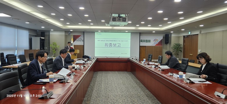 도는 10일 도청 중회의실에서 김영명 도 환경산림국장과 공주대학교 이재영 교수, 나사렛대학교 박미옥 교수 등 13여 명이 참석한 가운데, ‘제4차 충남도 환경교육 종합계획 수립 연구용역 최종보고회’를 개최했다.