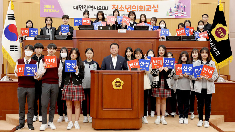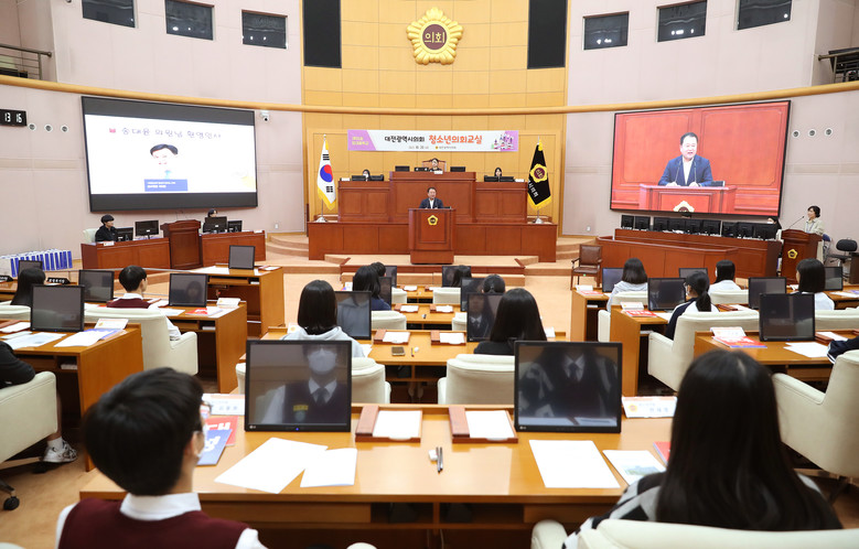 [대전 세계타임즈=이채봉 기자] 대전시의회(의장 이상래)는 20일 장대중학교 학생들을 대상으로 2023년 하반기 네 번째 청소년의회교실을 개최했다.