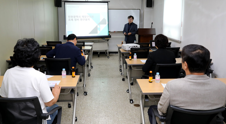 이날 보고회에는 계양구의회 연구단체 소속 의원인 조덕제 대표의원을 비롯하여 신정숙 의장, 정춘지 의원, 황순남 의원이 참석하였고, 연구 업체 청사진에서는 조성원 대표와 권기태 책임연구원이 참석하였다.